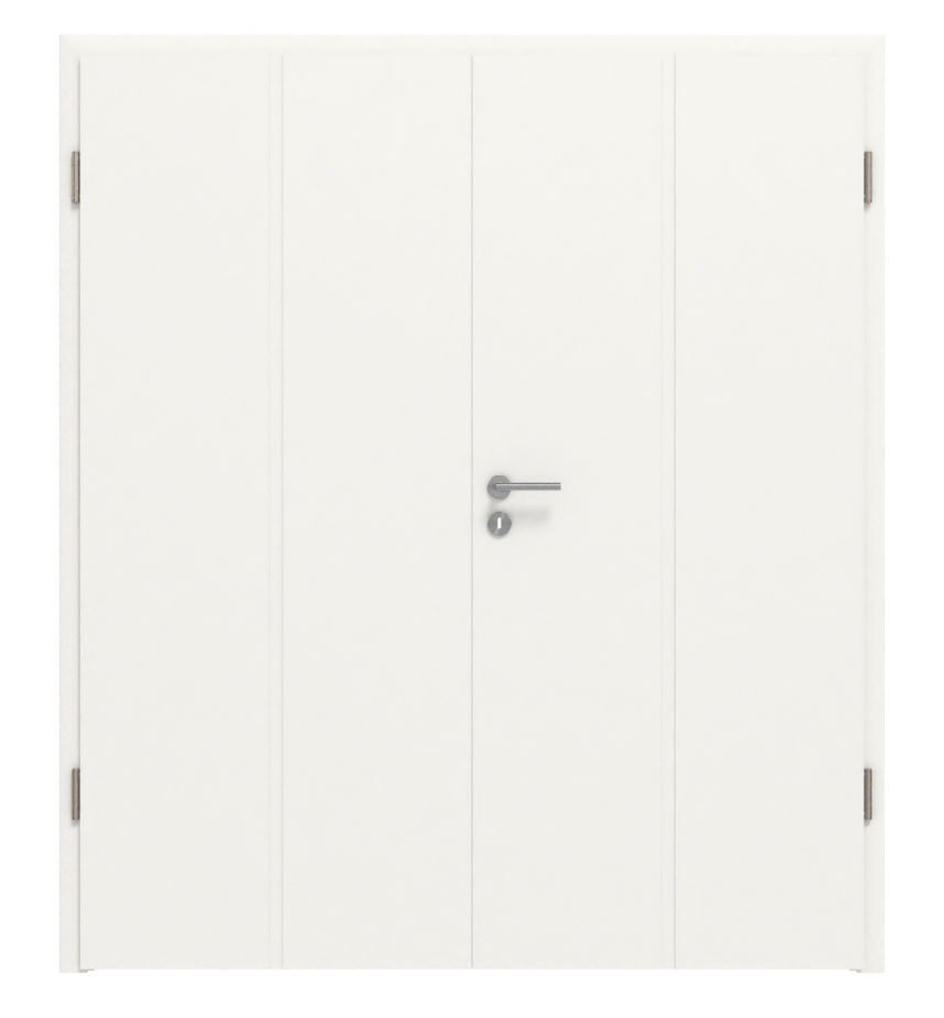 Skrzydło drzwiowe z geometrycznym wzornikiem: Otwartość i przyjazność są gwarantowane w Twoim domu dzięki drzwiom dwuskrzydłowym Cofi 13 w kolorze białym lakieru RAL 9016 wraz z ościeżnicą z serii Cofi .
