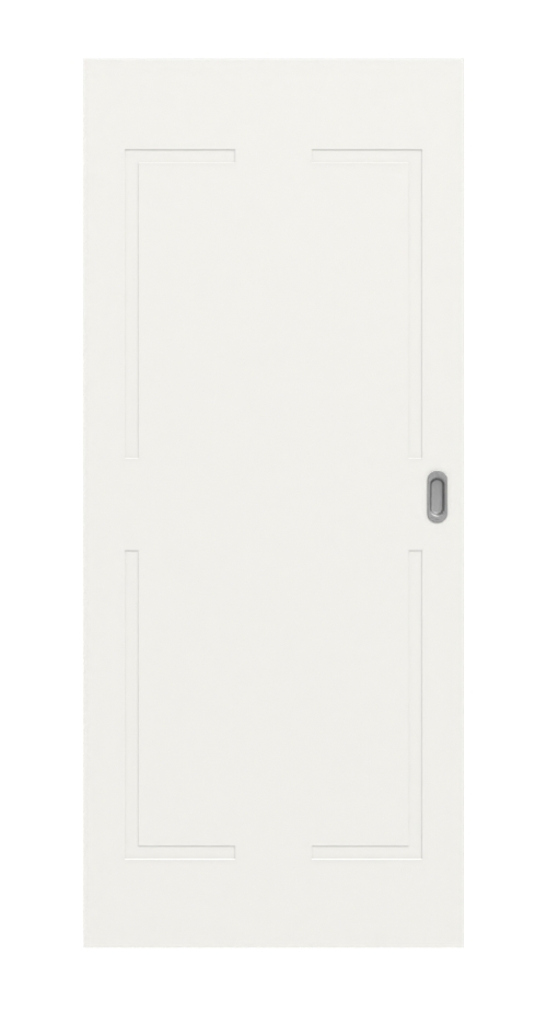 Wyfrezowania w kształcie litery L nadają skrzydłu drzwiowemu ponadczasowy wygląd kasetowy. Biała lakierowana powierzchnia podkreśla klasyczny wygląd.