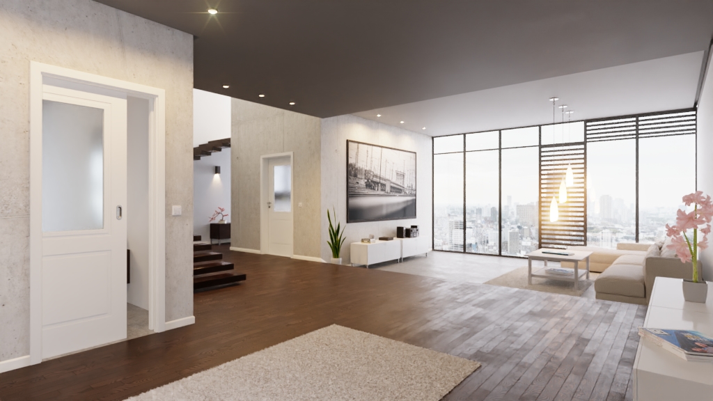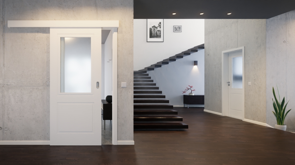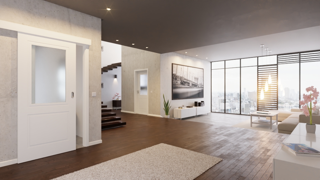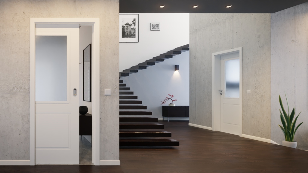 Na rzecz płynnej koncepcji przestrzeni : Drzwi przesuwne z białym lakierem Cofi 20 LA 01, należące do kolekcji Cofi Premium , zapewniają swobodę ruchu w Twoim domu.