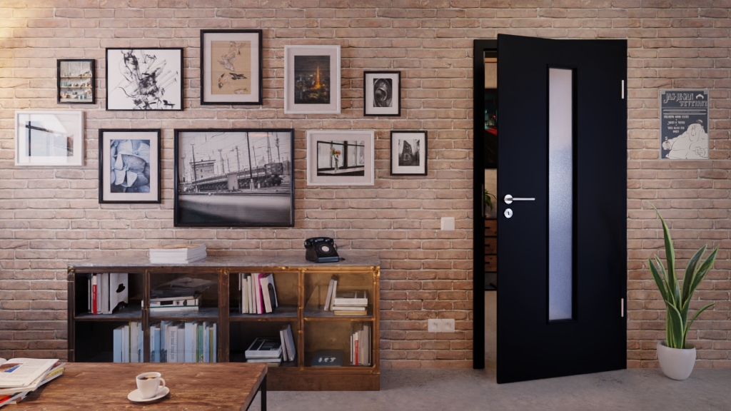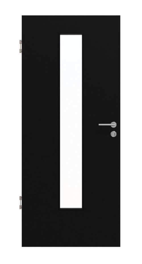 Długi, wąski fragment przeszklenia w środkowej części skrzydła drzwiowego wpuszcza nieco światła do pomieszczenia. Ponadto stanowi on atrakcyjny element przyciągający wzrok, który odświeża i ożywia ogólny wygląd.