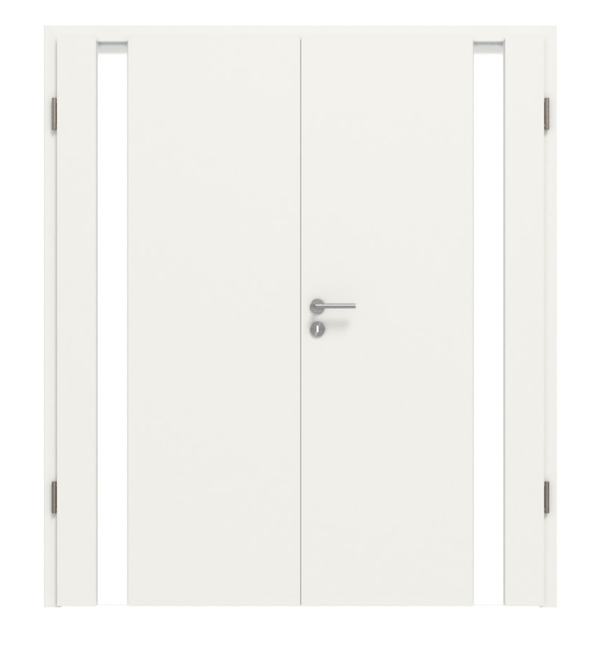 Po bokach obu białych skrzydeł drzwiowych znajdują się podłużne pasy świetlne na całej wysokości skrzydła drzwiowego. Umożliwiają one stworzenie otwartej przestrzeni mieszkalnej.