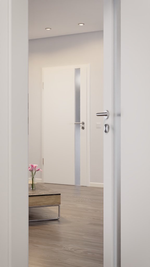 Drzwi, które zachwycają: Wybierając drzwi wewnętrzne Pure 1 po stronie zamkia w białym lakierze firmy Hörmann, decydujesz się na estetyczny design.
