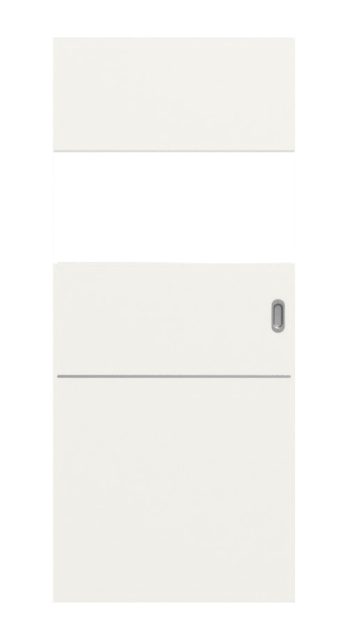 Pośrodku białego skrzydła drzwiowego znajduje się zlicowana z powierzchnią aplikacja ze stali szlachetnej biegnąca w poprzek skrzydła drzwiowego. Zapewnia to indywidualny i elegancki wygląd. Dzięki pasowi świetlnemu na wysokości oczu do Twojego domu wpada dużo światła.