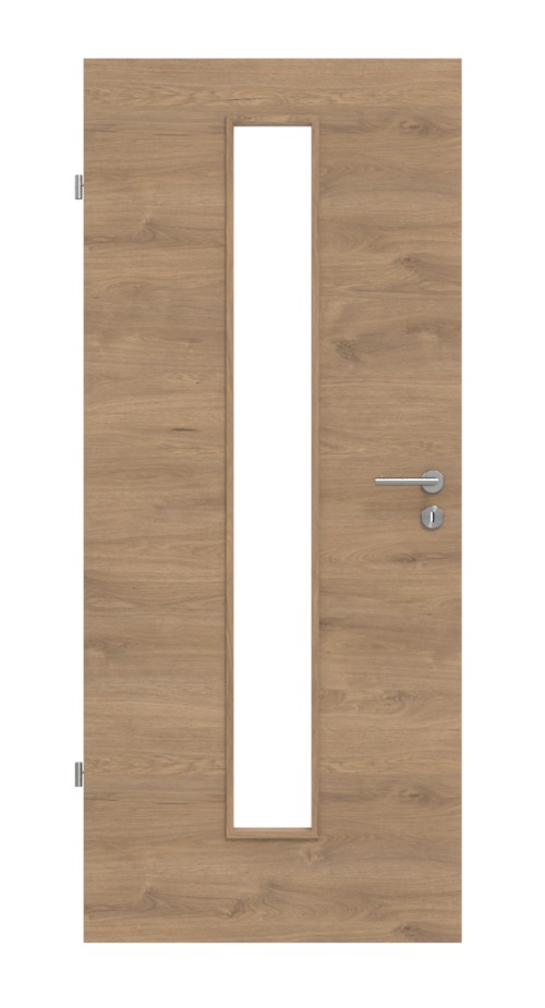 Nieograniczony widok na przeciwną stronę zapewnia wąski, centralnie umieszczony przeszklenie. Sięga ono prawie całej wysokości drzwi.