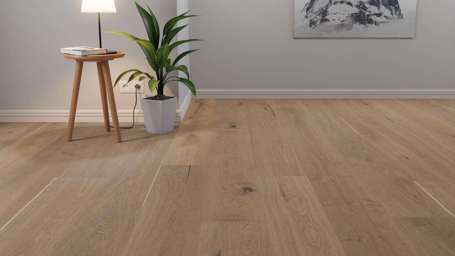 Jego naturalne wykończenie wizualne z pojedynczymi fragmentami bieli, sękami i pęknięciami tworzy autentyczny efekt. Głębokie szczotkowanie nadaje powierzchni szczególną fakturę i zaokrąglone kształty, które harmonijnie dopełniają wygląd podłogi. Ultra matowe wykończenie Duratec Nature sprawia, że deska jest wyjątkowo łatwa w pielęgnacji i odporna na plamy. Jednocześnie nadaje mu wyjątkowo matową i naturalną powierzchnię.