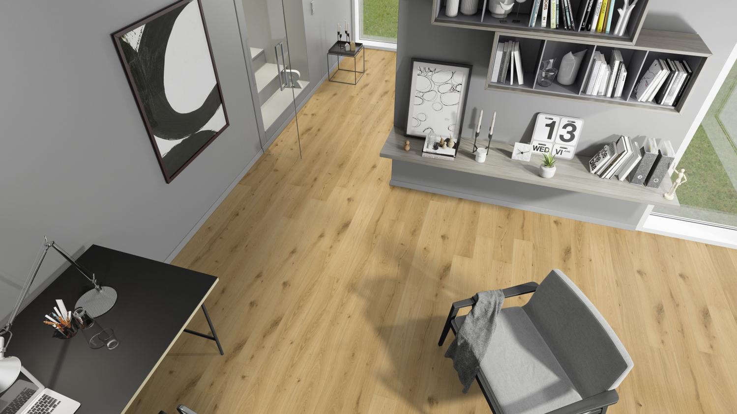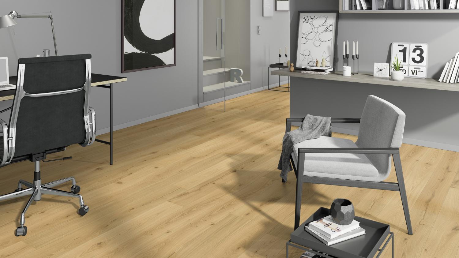 Stylowy klasyk do przedpokoju: Parkiet z autentycznie szczotkowanego dębu z kolekcji MeisterParkett. longlife PD 400 wprowadza naturalną, piękną atmosferę do Twojego domu.