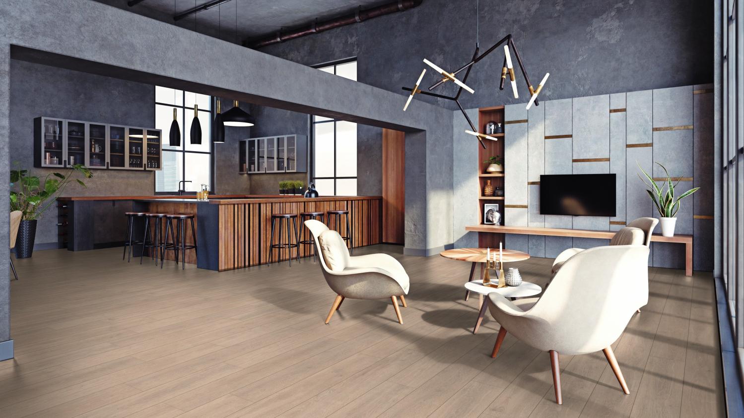 Aby stworzyć harmonijną atmosferę: Eleganckie panele laminowane w kolorze dębu Caledonia matowego firmy MEISTER z serii LD 150 są idealne do stworzeniaprzytulnej atmosfery.