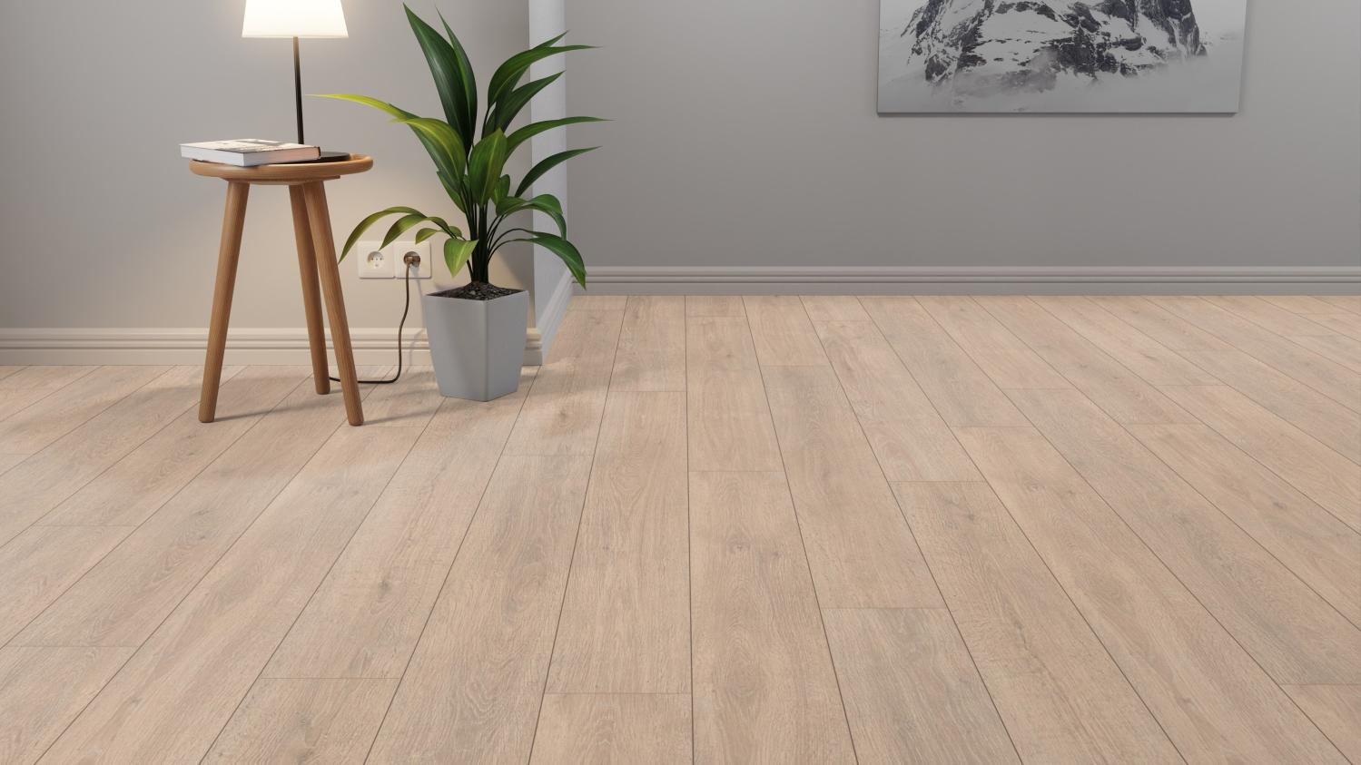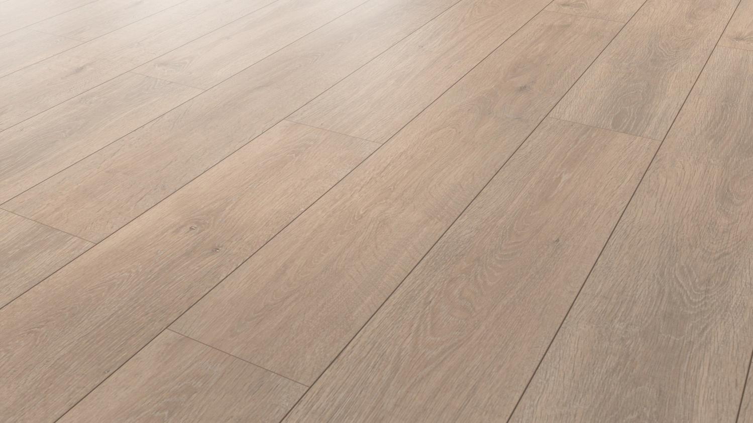 Dzięki stonowanemu designowi podłoga laminowana stylowo komponuje się z każdym wystrojem wnętrza. Spokojne usłojenia i subtelne przejścia kolorów charakteryzują wygląd dębu. Dekor drewna ma specjalną fakturę i przekonuje zarówno pod względem dotykowym, jak i wizualnym.