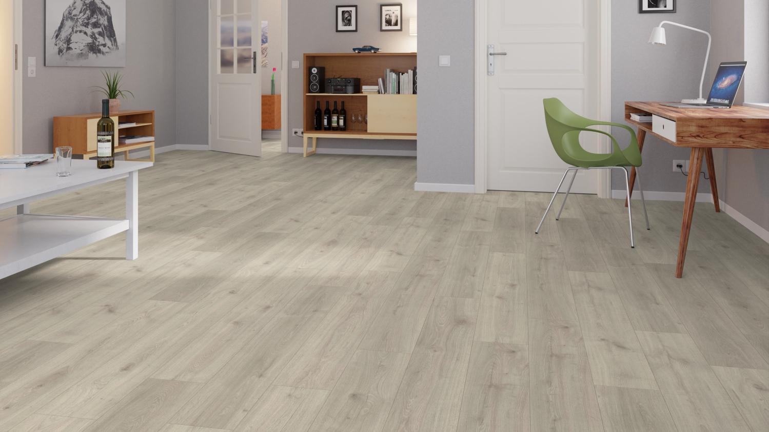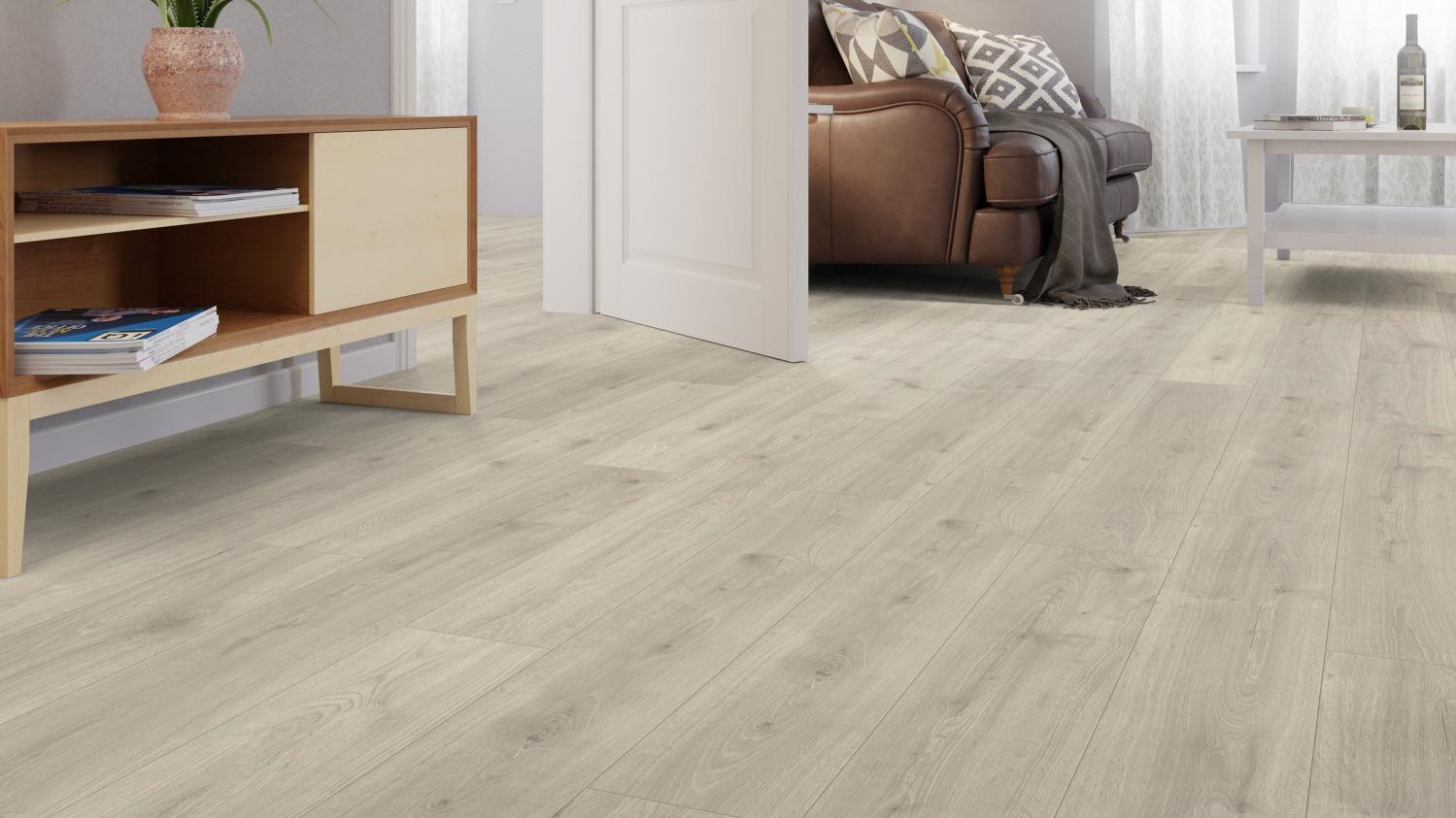Projektowanie wnętrz zaczyna się od podłogi: Taka podłoga laminowana z kolekcji Twojedrzwi24 w kolorze dębu Catalina o synchronicznie strukturyzowanej powierzchni z serii Natura nie tylko dobrze wygląda, ale także całkowicie zmienia atmosferę mieszkania.