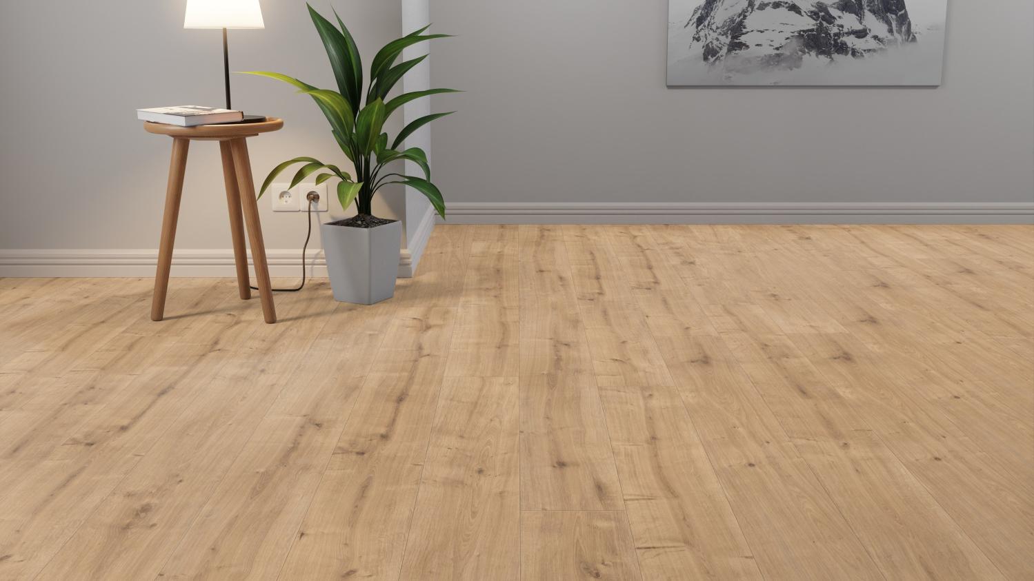 Pomimo swojej naturalności podłoga przekonuje przede wszystkim swoimi praktycznymi właściwościami. Dzięki wyraźnej powierzchni podłoga z nośnikiem HDF jest naprawdę przyjemna w dotyku. Idealne do chodzenia na boso! Podłoga jest odporna na ścieranie i nacisk. Jego łatwa w pielęgnacji powierzchnia pozwala w prosty sposób usunąć zabrudzenia.
