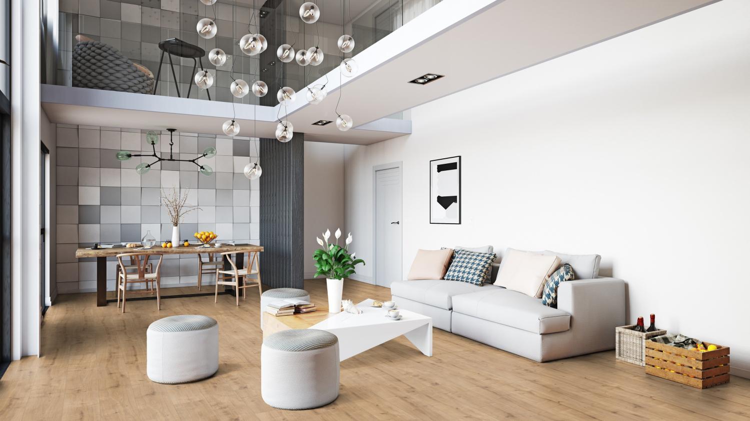 Nieporównywalna autentyczność dla Twoich pomieszczeń mieszkalnych: Podłoga laminowana dąb Chalet z serii Classic Touch firmy Kaindl jest inspirowana i charakteryzuje się klasycznym pięknem natury.