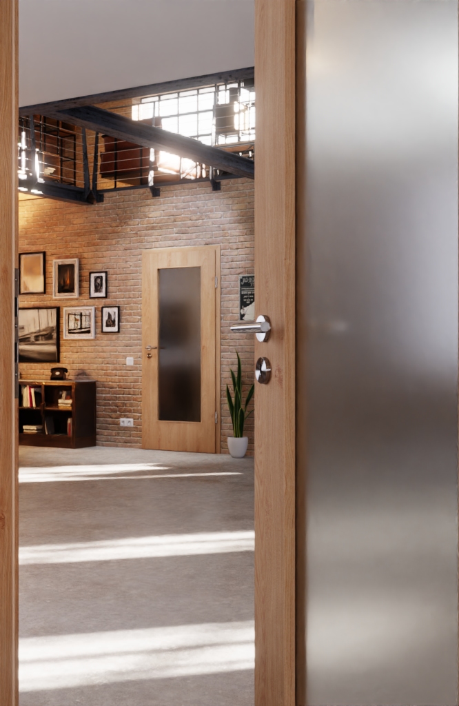 Szczególna uwaga poświęcona jest otworowi świetlnemu tych drzwi. Dzięki niemu przestrzeń wydaje się większa. Oprócz nowoczesnych szkła, takich jak Mastercarree czy satynowe, dostępne są również klasyki, takie jak szkło przezroczyste. O potrzebną wytrzymałość dba rdzeń z twardego drewna.