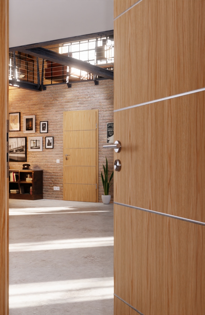 Powierzchnia drzwi jest pokryta fornirem z wyselekcjonowanych gatunków szlachetnego drewna . Właściwości naturalnego materiału sprawiają, że każde drzwi są unikatowe .