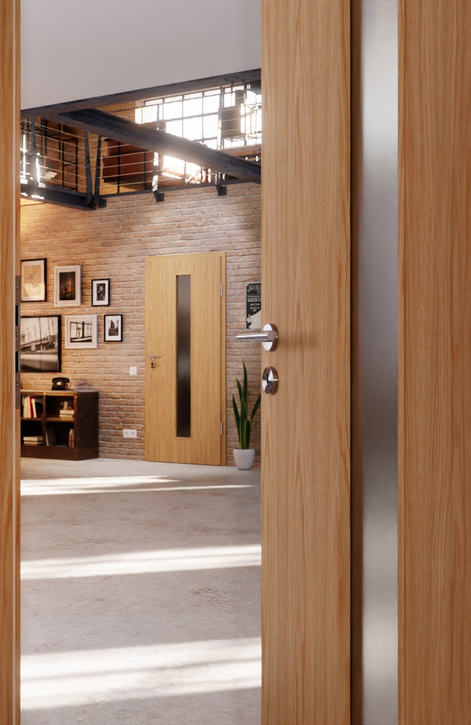 Oryginalność i komfort: Drzwi wewnętrzne fornirowane drewnem naturalnym od renomowanego producenta Jeld-Wencharakteryzują się równomiernym i prostoliniowym wyglądem.