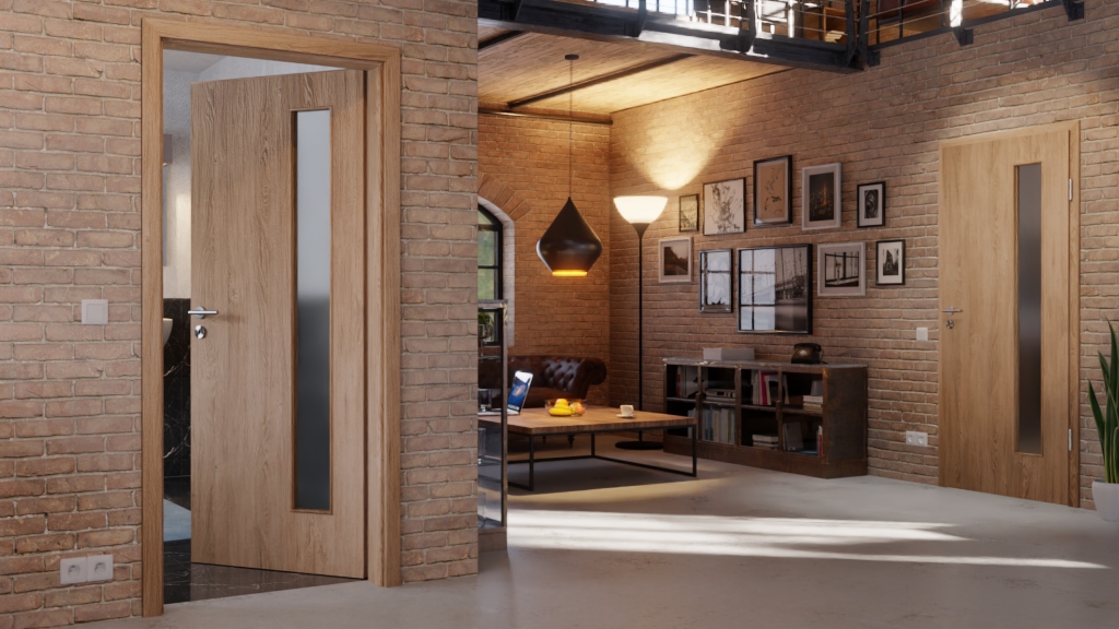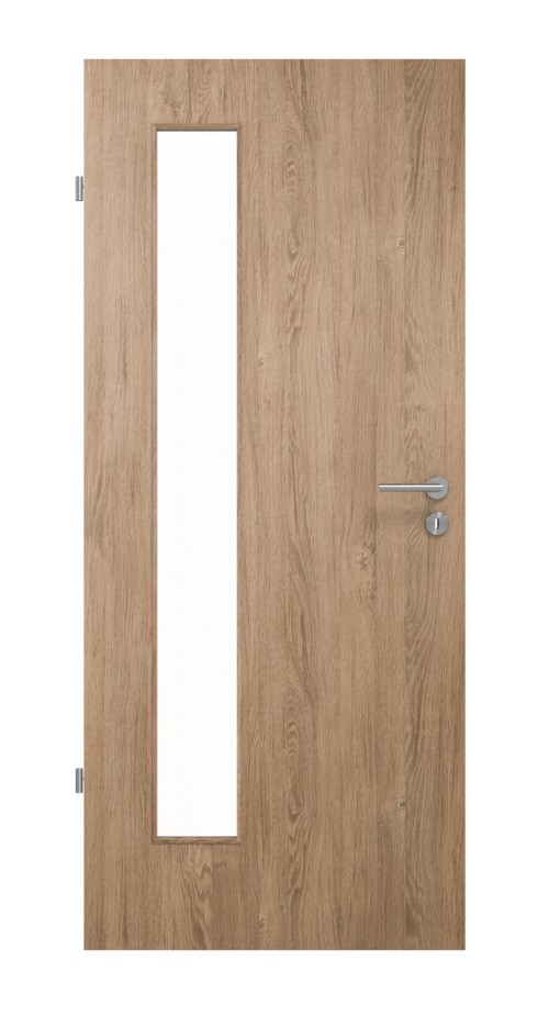 Wdzięk drewnianych drzwi z otworem świetlnym: Szklana wkładka i solidne wykonanie łączą się w drzwiach wewnętrznych w kolorze dębu firmy Jeld-Wen.