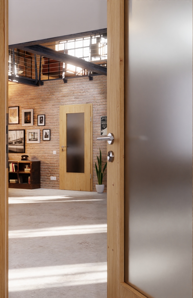 Szczególną uwagę przykuwa otwór świetlny w drzwiach. Dzięki niemu pomieszczenie wydaje się optycznie większe. Oprócz nowoczesnych rodzajów szkła, takich jak Mastercarree lub satynowane, dostępne są również klasyczne warianty, takie jak szkło przezroczyste. Niezbędną wytrzymałość zapewnia rama z twardego drewna.