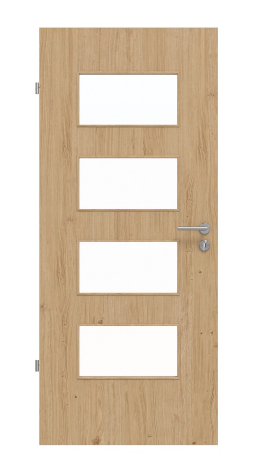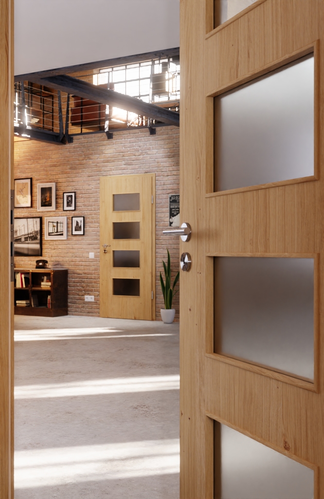 Szczególną uwagę przykuwa otwór świetlny w drzwiach. Dzięki niemu pomieszczenie wydaje się optycznie większe. Oprócz nowoczesnych rodzajów szkła, takich jak Mastercarree lub satynowane, dostępne są również klasyczne warianty, takie jak szkło przezroczyste. Niezbędną wytrzymałość zapewnia rama z twardego drewna.