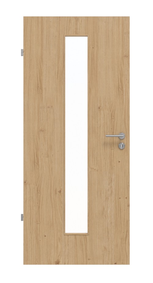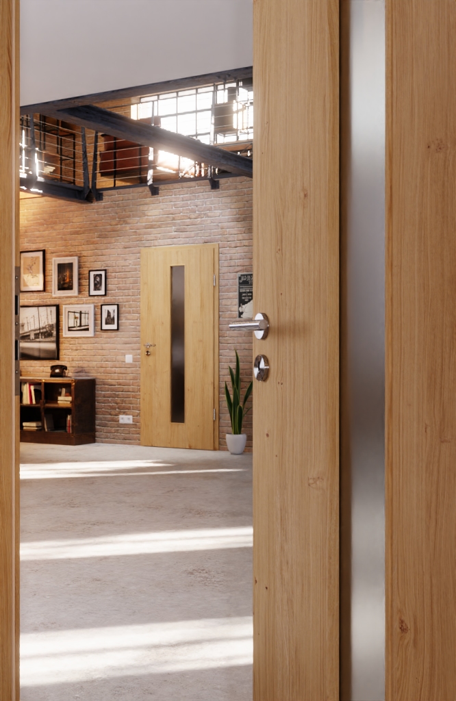 Otwór świetlny tych drzwi zapewnia wrażenie otwartej przestrzeni mieszkalnej . Do wyboru klasyczne szkło przezroczyste lub inna modna odmiana szkła. Stabilność zapewnia ramiak z twardego drewna, umieszczony wewnątrz skrzydła.