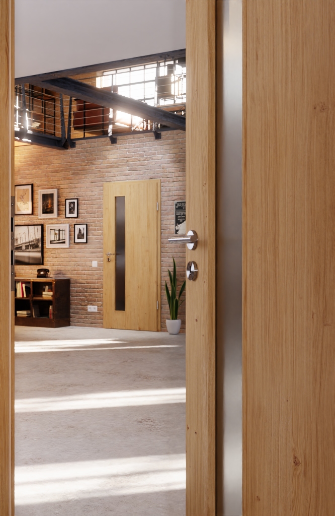 Wytnij otwór, aby uzyskać wrażenie otwartej przestrzeni mieszkalnej. Model dostępny zarówno w klasycznej wersji z szkłem przezroczystym, jak i z nowoczesnymi wariantami szkła. Ramiak z twardego drewna zapewnia drzwiom niezbędną stabilność.