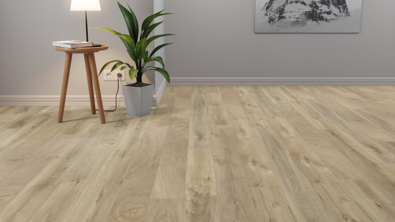Układanie laminatu jest proste dzięki systemowi na zatrzaski. Możliwa jest również instalacja na ogrzewaniu podłogowym z ciepłą wodą.