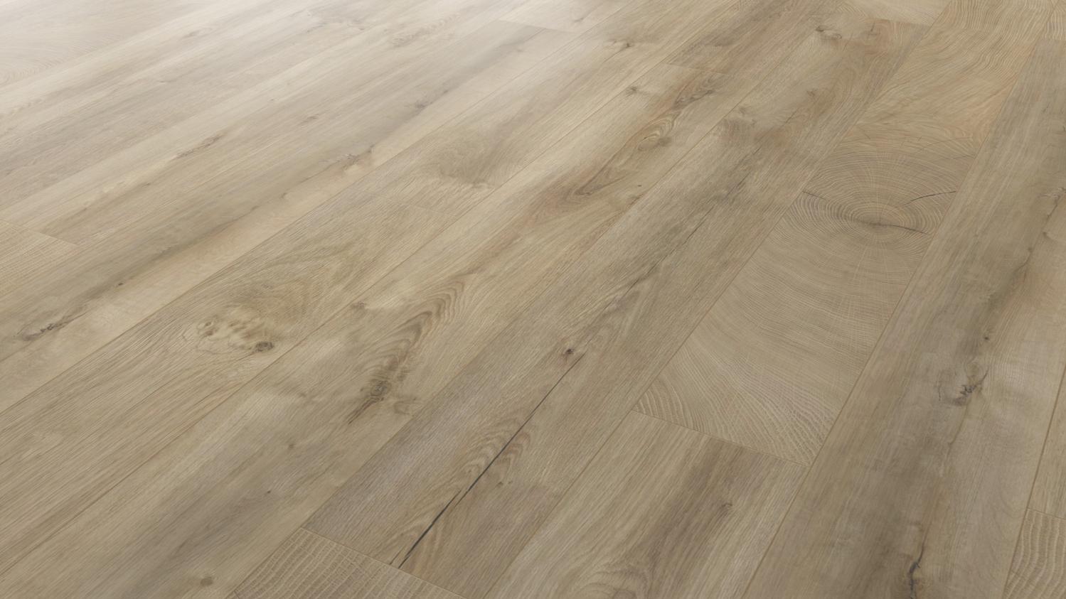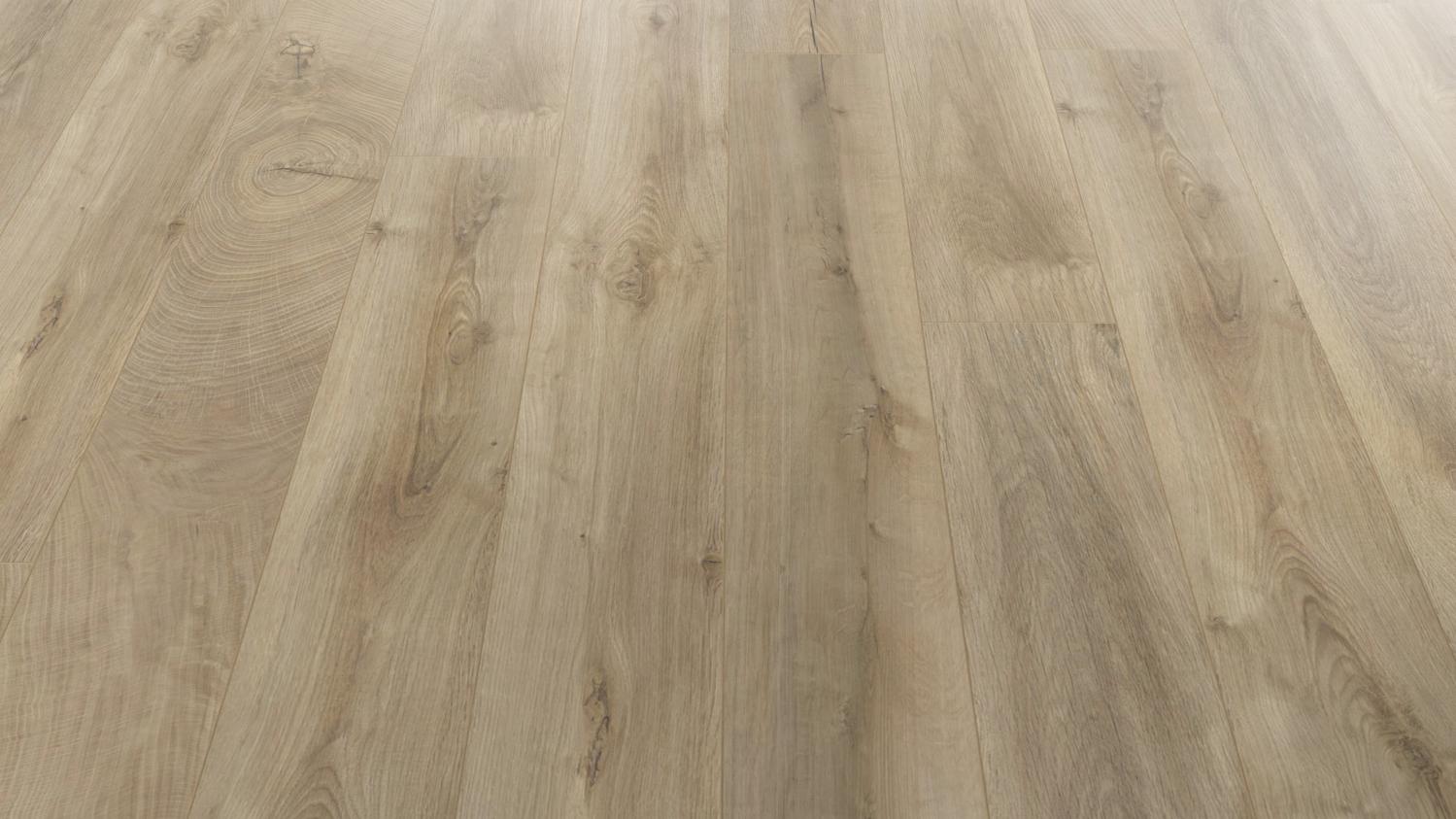 Dzięki specjalnej powierzchni Natural Touch dekor 1-deski jest również autentyczny w dotyku. Podłoga przekonuje praktycznymi zaletami: Jest odporny na uszkodzenia, zachowuje trwałość koloru i odporność na światło, a także jest wyjątkowo łatwy w pielęgnacji. Podłoga składa się z odpornej na ścieranie warstwy wierzchniej o autentycznej powierzchni, warstwy spodniej, płyty nośnej HDF oraz papieru dekoracyjnego.