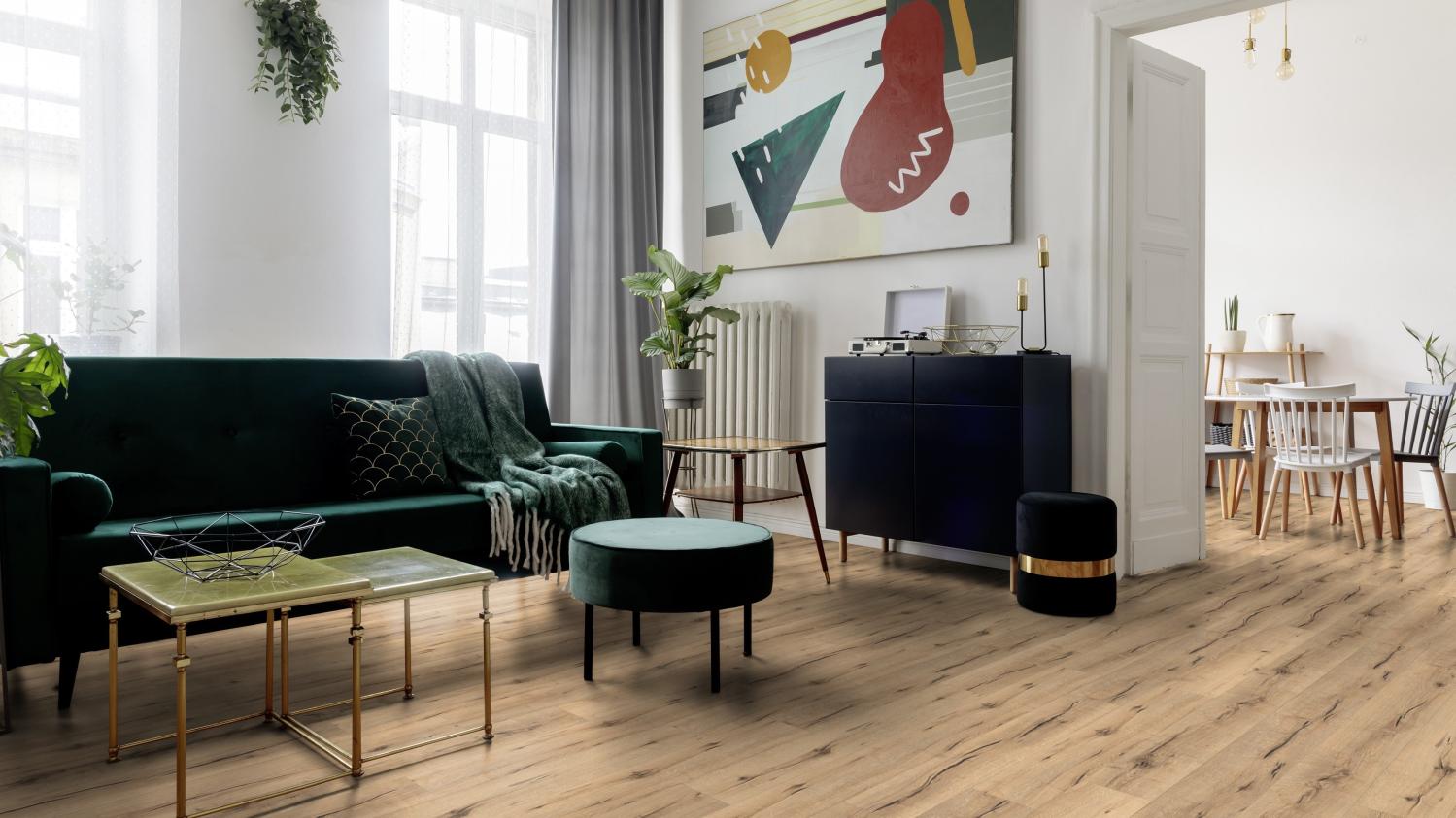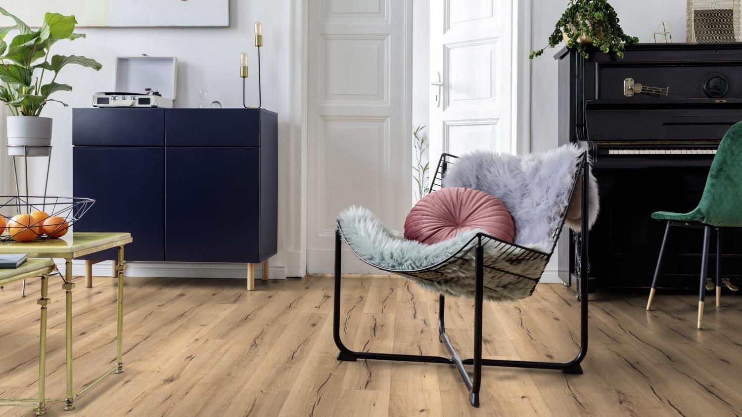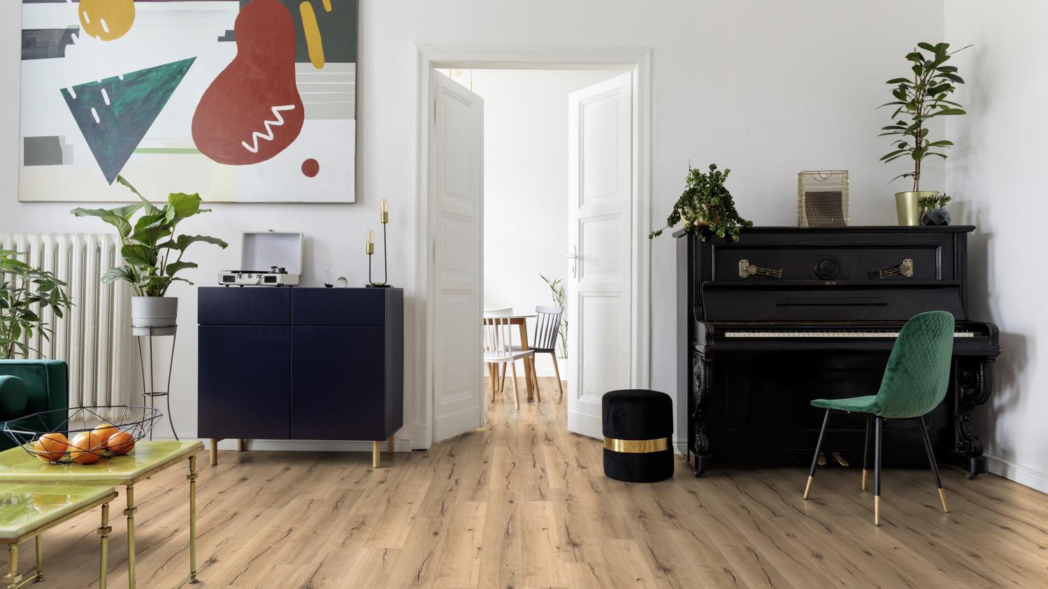Zintegrowana warstwa wygłuszająca stanowi szczególną zaletę tej podłogi. Układanie pływające ułatwia montaż nowej podłogi.