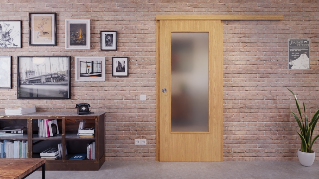 Elegancka i oszczędzająca miejsce drzwi przesuwne PortaLit od Westag z wytrzymałą powierzchnią CPL w jasnym dębie: