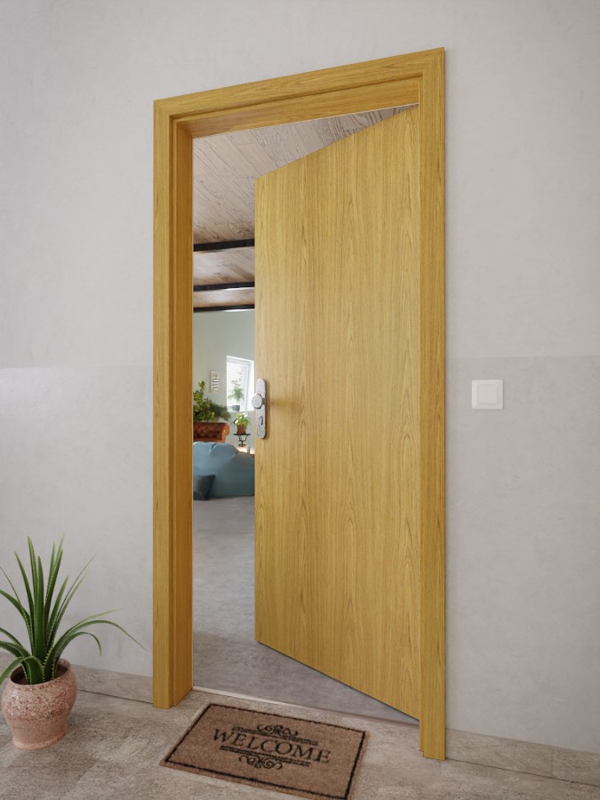 Dzięki masywnej płycie pełnej w standardowej konfiguracji, mogą one radzić sobie z typowymi wahaniami temperatury i różnicami wilgotności powietrza. Ponadto są odporne na codzienne hałasy przy prawidłowym montażu. Wyższa klasa klimatyczna ma dodatkową płytę ochronną klimatyczną. Możliwość modernizacji w zakresie klas klimatycznych i odpornościowych jest dostępna, można ją starannie sprawdzić i łatwo skonfigurować. Proszę pamiętać: w standardowym elemencie drzwiowym nie ma ochrony przed włamaniem. Więcej informacji na temat funkcji ochronnych można znaleźć w odpowiedniej sekcji (zalecana standardowa ochrona jest zapewniona przez klasę odporności WK 2).