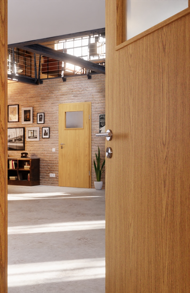 Drzwi w jasnym dębie imponują klasyczną powłoką z dekoracją drewnianą. Posiadają szczegółowy rysunek drewna, który uchwyca charakter drewna, a dzięki wielokolorowym tonom wyglądają bardzo naturalnie.