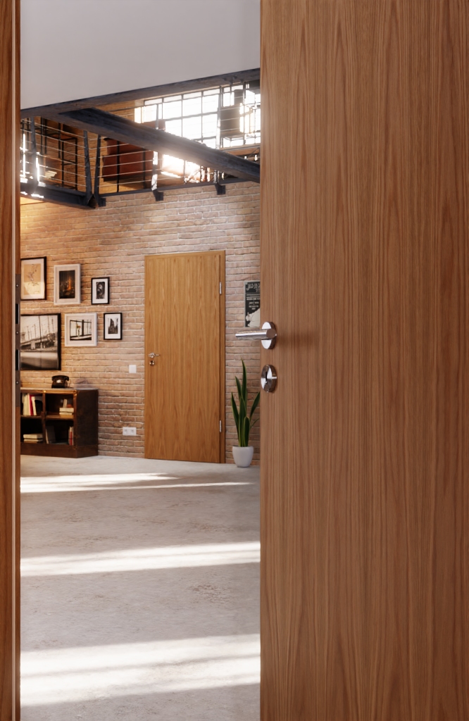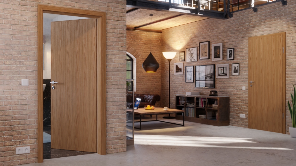 Drzwi wewnętrzne Optima, fornirowane drewnem naturalnym, przekonują prostym designem i wysoką funkcjonalnością.