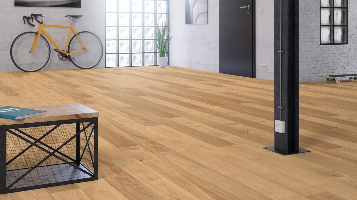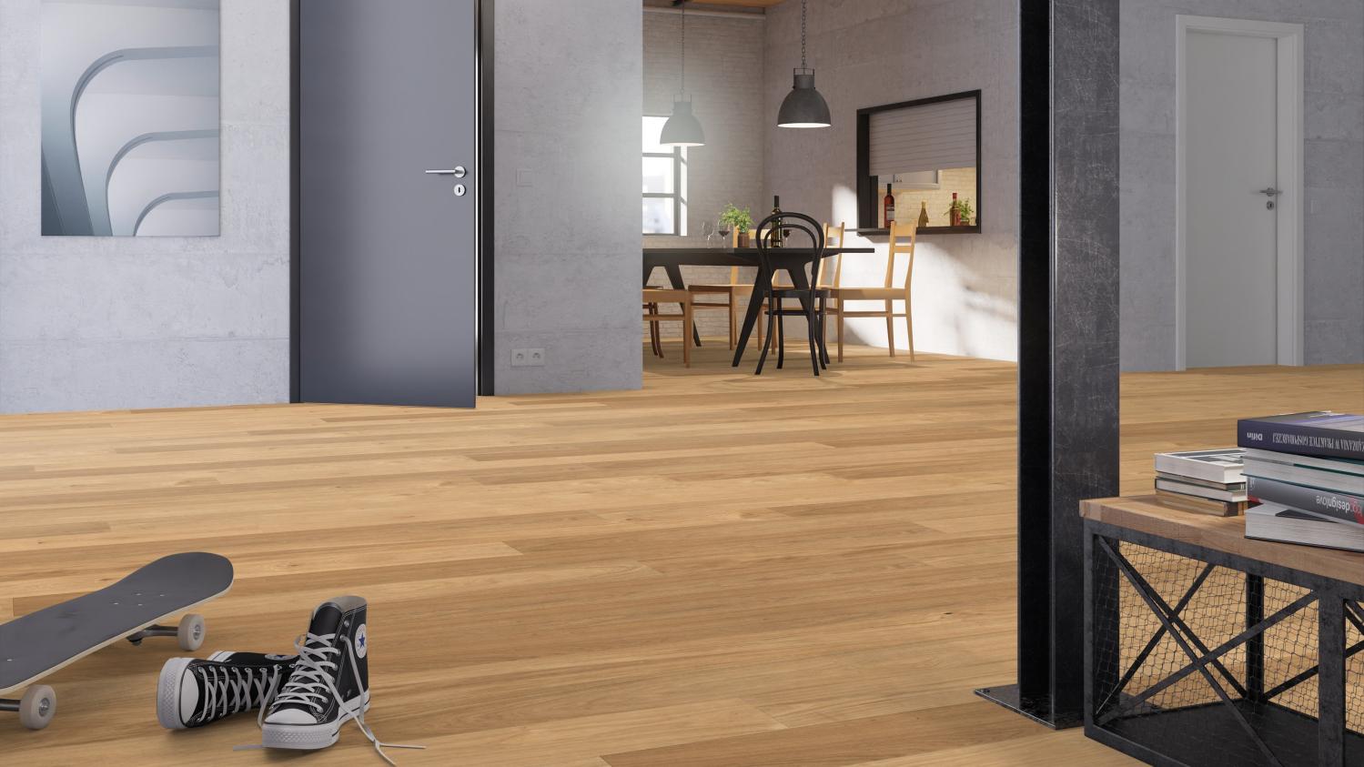 Ciesz się urokiem prawdziwej drewnianej podłogi: Dzięki parkietowi dębowemu Markant strukturyzowanemu z serii 4000 desek w stylu rustykalnym Haro jesteś o krok bliżej natury.