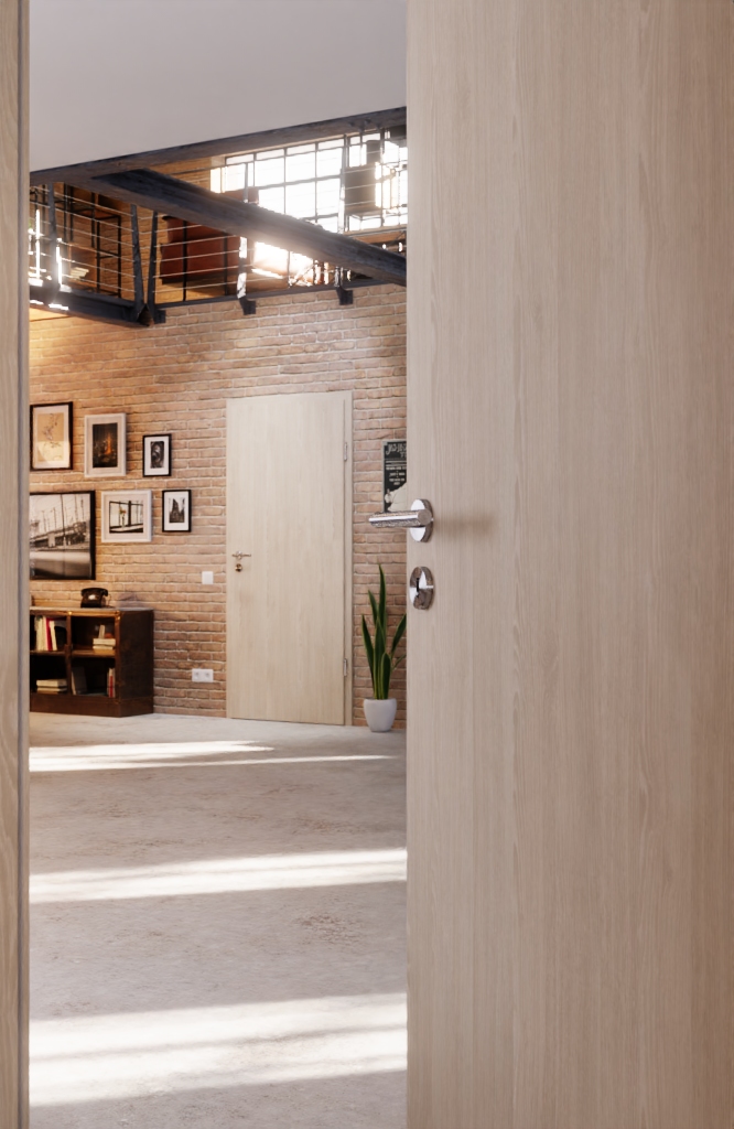 Drzwi wewnętrzne z odporną powierzchnią HPL w kolorze dąb platynowy
