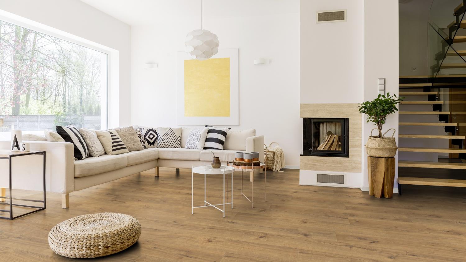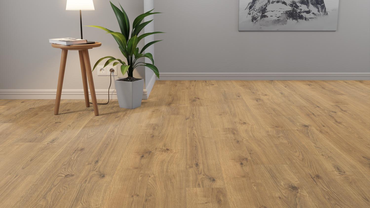 Piękna podłoga laminowana o doskonałym stosunku ceny do jakości, która doskonale komponuje się z wieloma różnymi stylami wnętrz. Jest to bezpieczny wybór również w przypadku stosowania w pomieszczeniach wilgotnych. Układanie pływające pozwala na łatwy montaż.