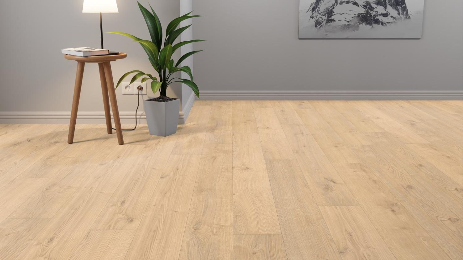 Dzięki tej wysokiej jakości podłodze laminowanej otrzymują Państwo prawdziwy produkt z najwyższej półki. W tej niezawodnej wykładzinie podłogowej zastosowano już zintegrowaną izolację akustyczną. Układanie pływające ułatwia montaż podłogi.