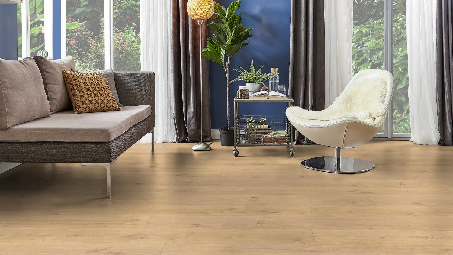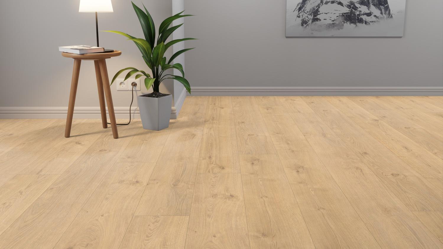 Ta podłoga laminowana to doskonale wykonany produkt klasy premium, który zapewnia najlepszy stosunek ceny do jakości. Można go bez obaw stosować nawet w pomieszczeniach wilgotnych. Układanie pływające ułatwia montaż podłogi.