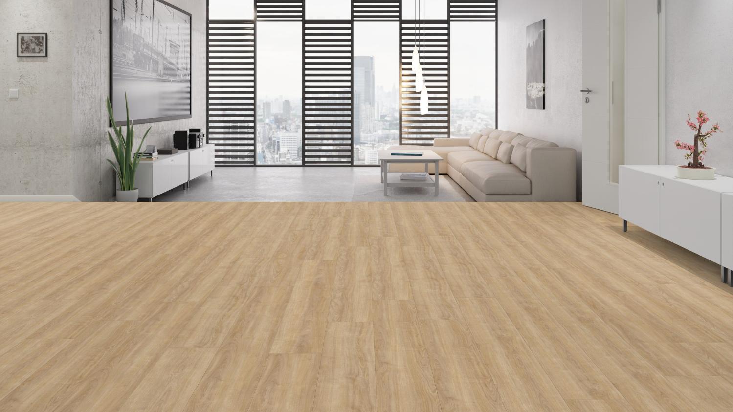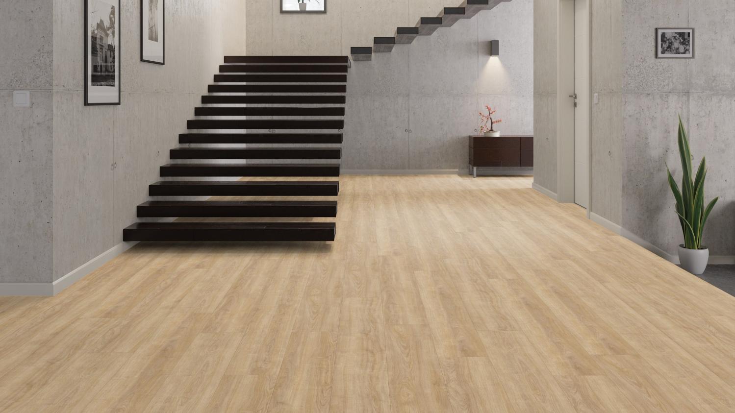 Piękna podłoga laminowana o doskonałym stosunku ceny do jakości, która doskonale komponuje się z wieloma różnymi stylami wnętrz. Dzięki układaniu pływającemu montaż nowej podłogi staje się łatwiejszy.