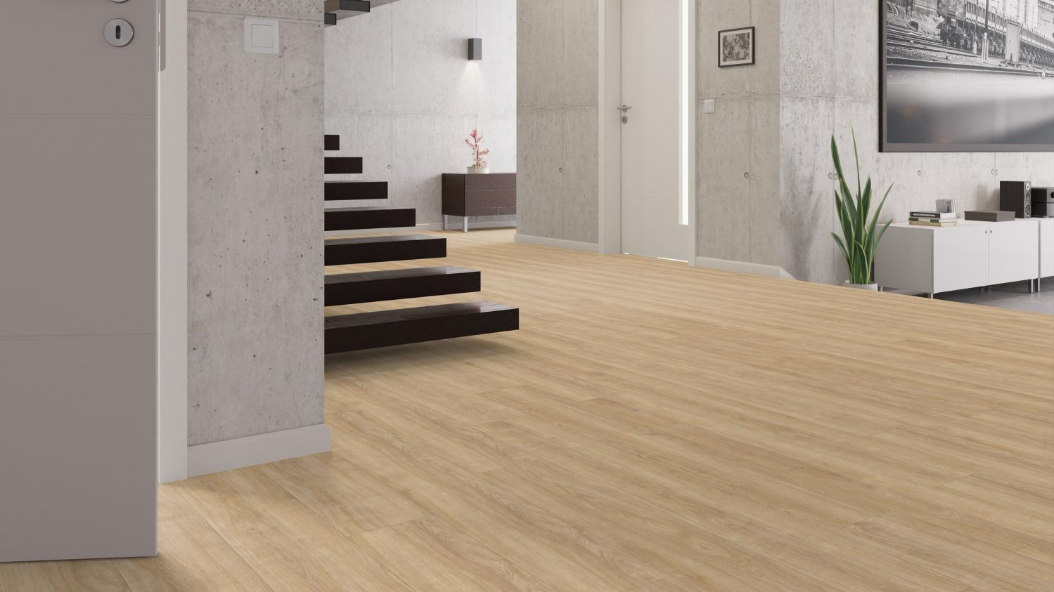Trwała podłoga do Twojego mieszkania: Panele laminowane dębowe puro authentic z serii TRITTY 100 Gran Via firmy Haro to podłoga łatwa w pielęgnacji i trwała.