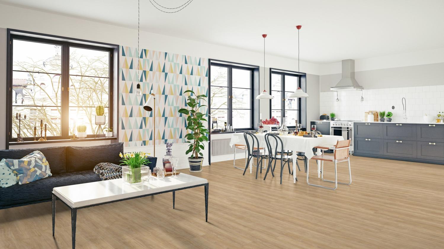 Trwała podłoga do Twojego mieszkania: Panele laminowane dębowe puro authentic z serii TRITTY 100 Gran Via Silent Pro firmy Haro to podłoga łatwa w pielęgnacji i trwała.