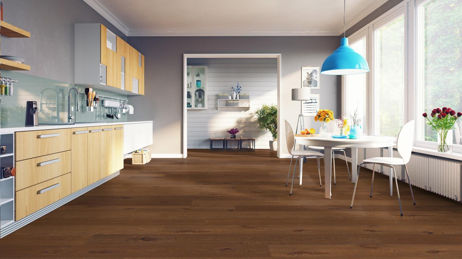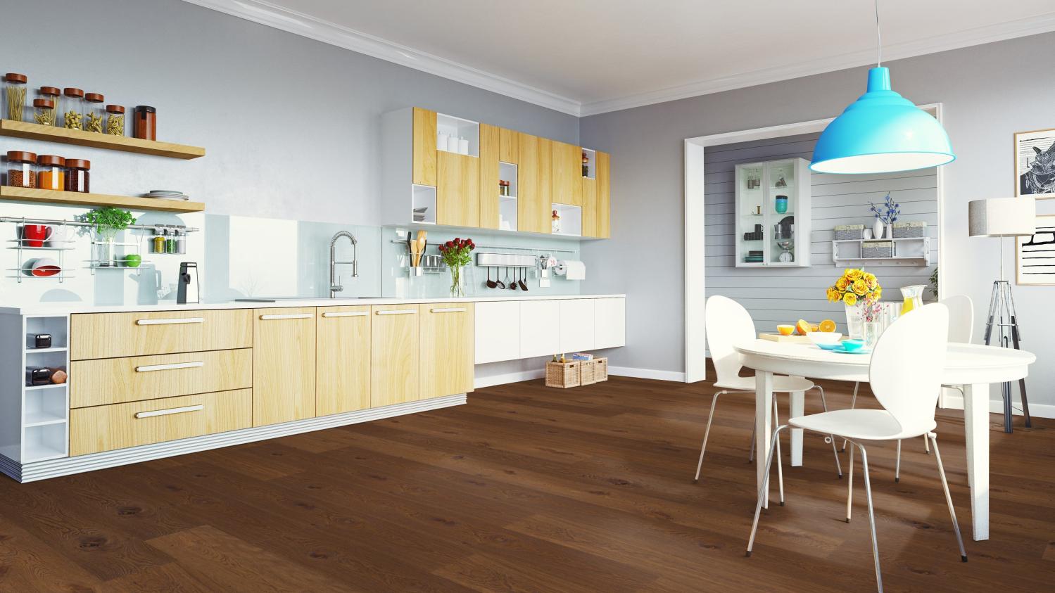 Mieszkanie z atmosferą dobrego samopoczucia: Podłoga parkietowa z kolekcji Twojedrzwi24 w kolorze dębu rustykalnego marine łączy w sobie atrakcyjne wykończenie wizualne z trwałością.