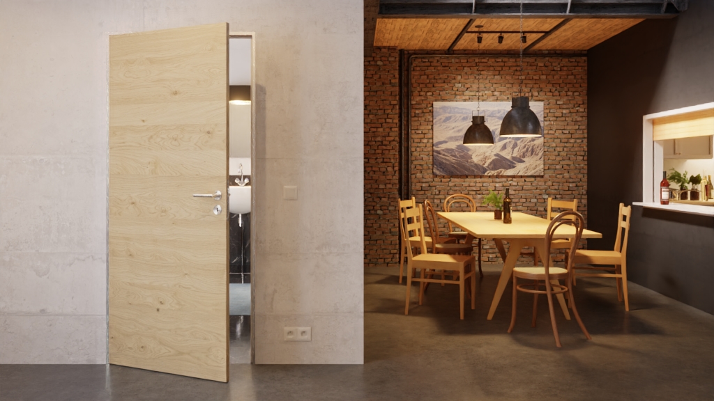 Designerskie drzwi na równi ze ścianą w kolorze dąb sękaty wzdłuż z serii modulWERK 2.0