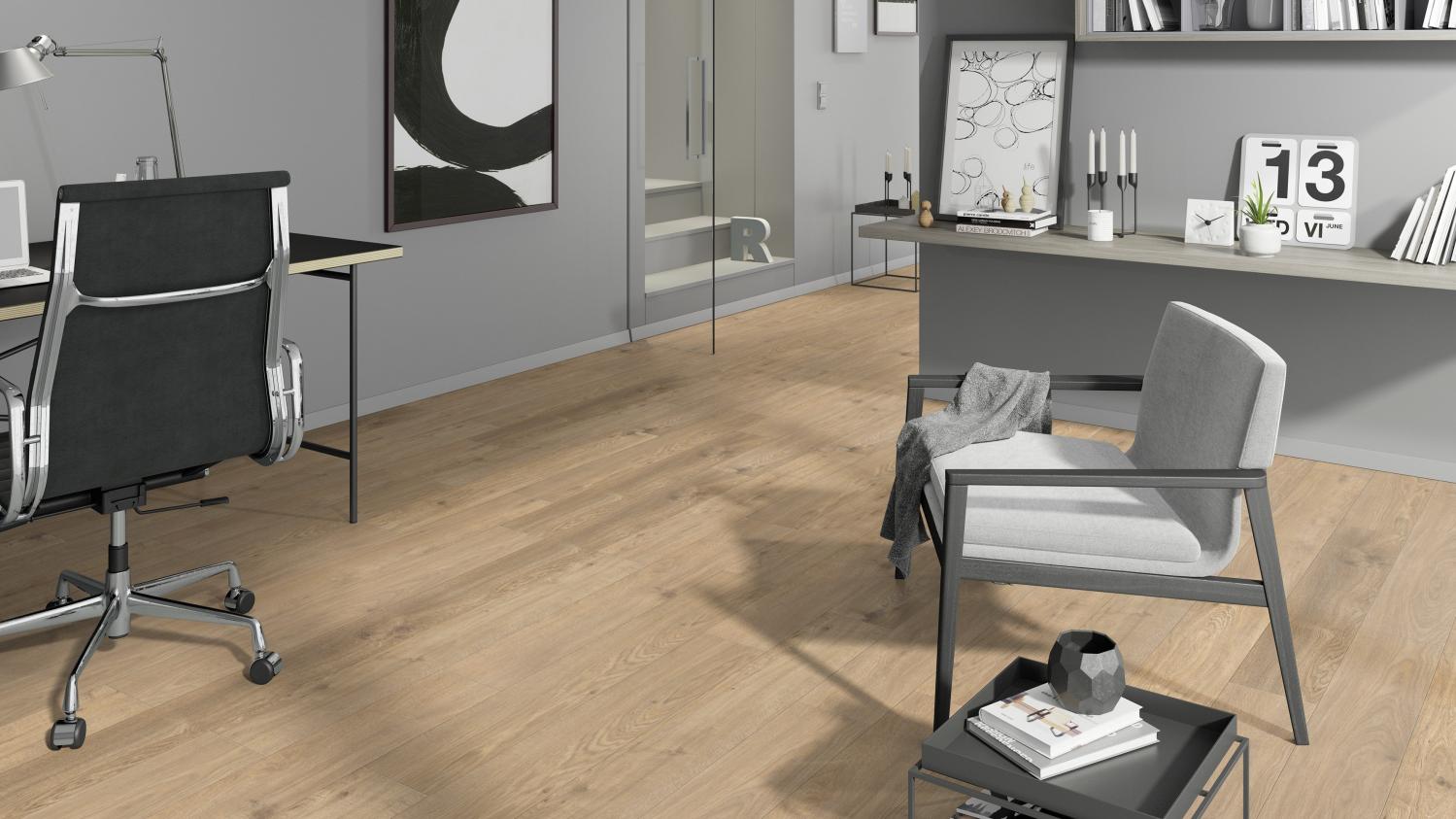 Łatwe w pielęgnacji i trwałe: Dzięki panelom laminowanym dębowym Sicilia puro matowe z serii TRITTY 200 Aqua Silent CT firmy Haro zyskasz wytrzymałą podłogę w swoich pomieszczeniach mieszkalnych.