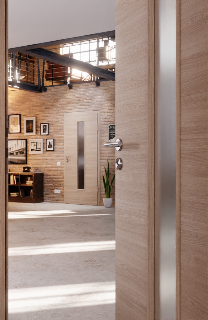 Długi, wąski przeszklenie na środku skrzydła drzwi wpuszcza trochę światła do Twojego pomieszczenia. Dodatkowo stanowi atrakcyjny element, który odświeża ogólny wygląd.