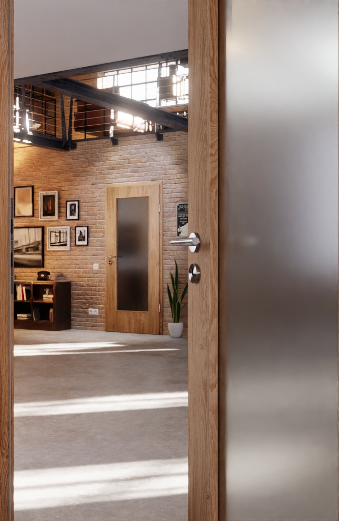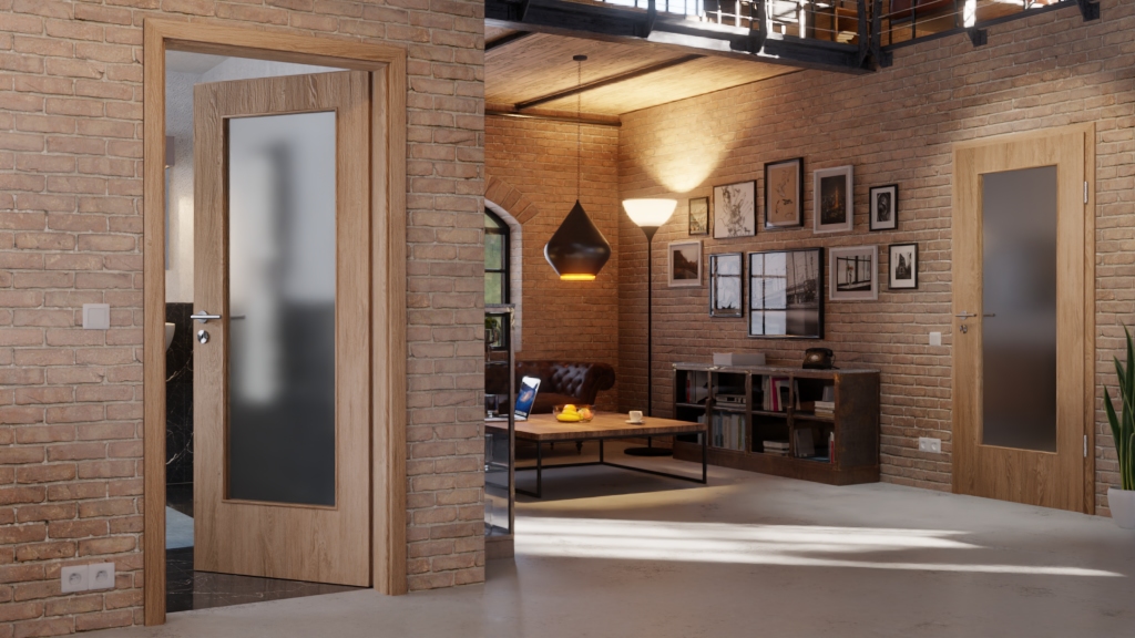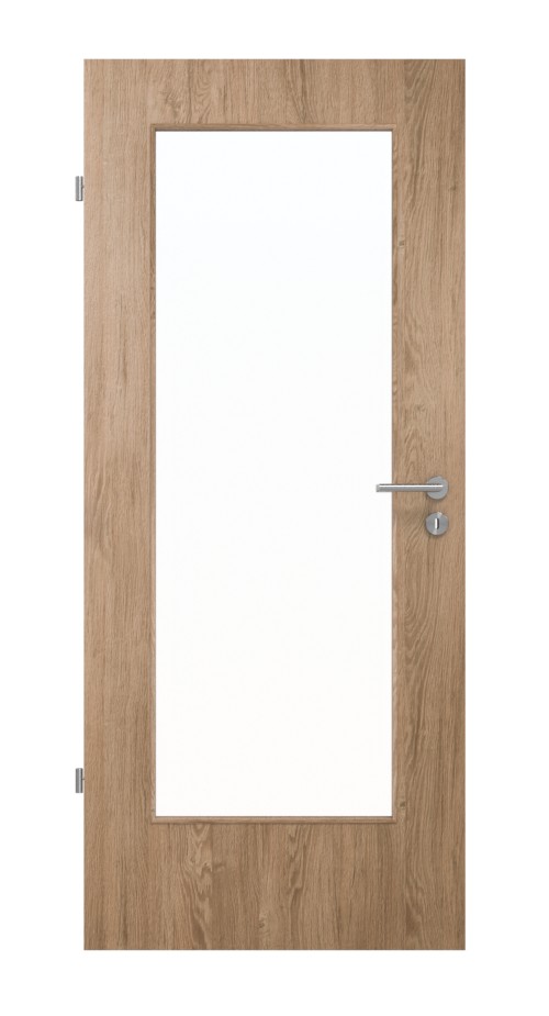 Otwór świetlny tych drzwi zapewnia wrażenie otwartej przestrzeni mieszkalnej . Do wyboru klasyczne szkło przezroczyste lub inna modna odmiana szkła. Stabilność zapewnia ramiak z twardego drewna, umieszczony wewnątrz skrzydła.