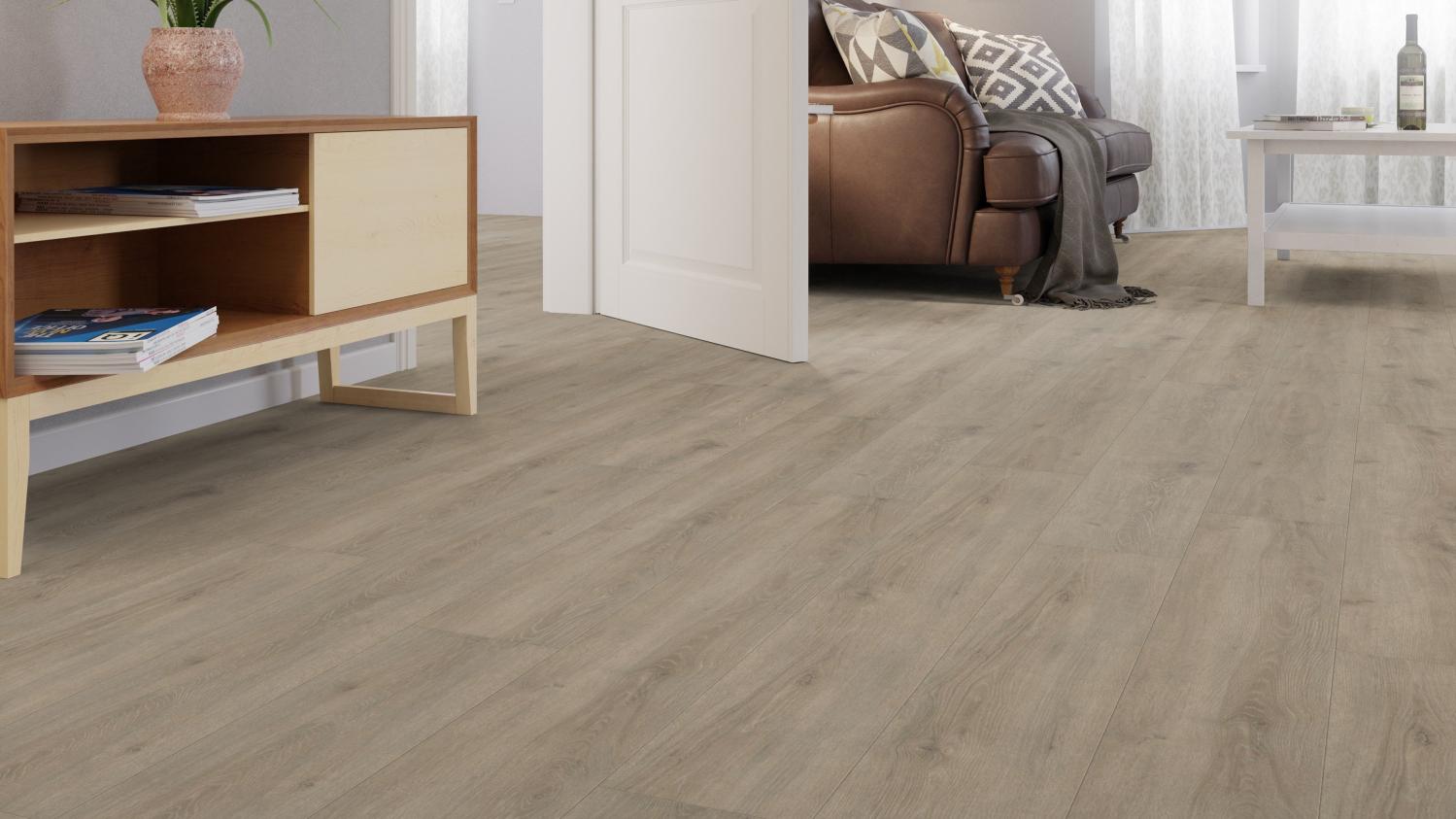 Ciesz się wszechstronną i wytrzymałą podłogą: Panele laminowane dębowe Veneto mocca matowe z serii TRITTY 100 Gran Via Silent Pro firmy Haro to podłoga o wysokiej odporności.