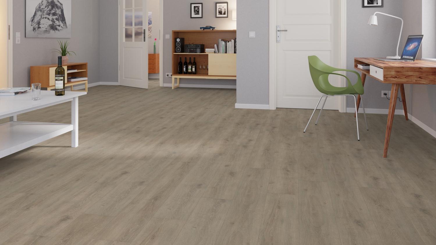 Ta podłoga laminowana to doskonale wykonany produkt klasy premium, który zapewnia najlepszy stosunek ceny do jakości. Dzięki wbudowanej warstwie tłumiącej odgłosy kroków ta wykładzina podłogowa charakteryzuje się wyjątkowo niskim poziomem hałasu. Dzięki układaniu pływającemu montaż mogą wykonać nawet osoby nieposiadające doświadczenia.