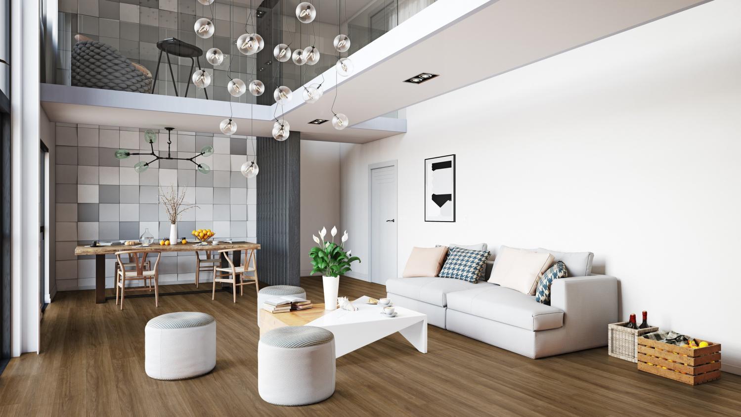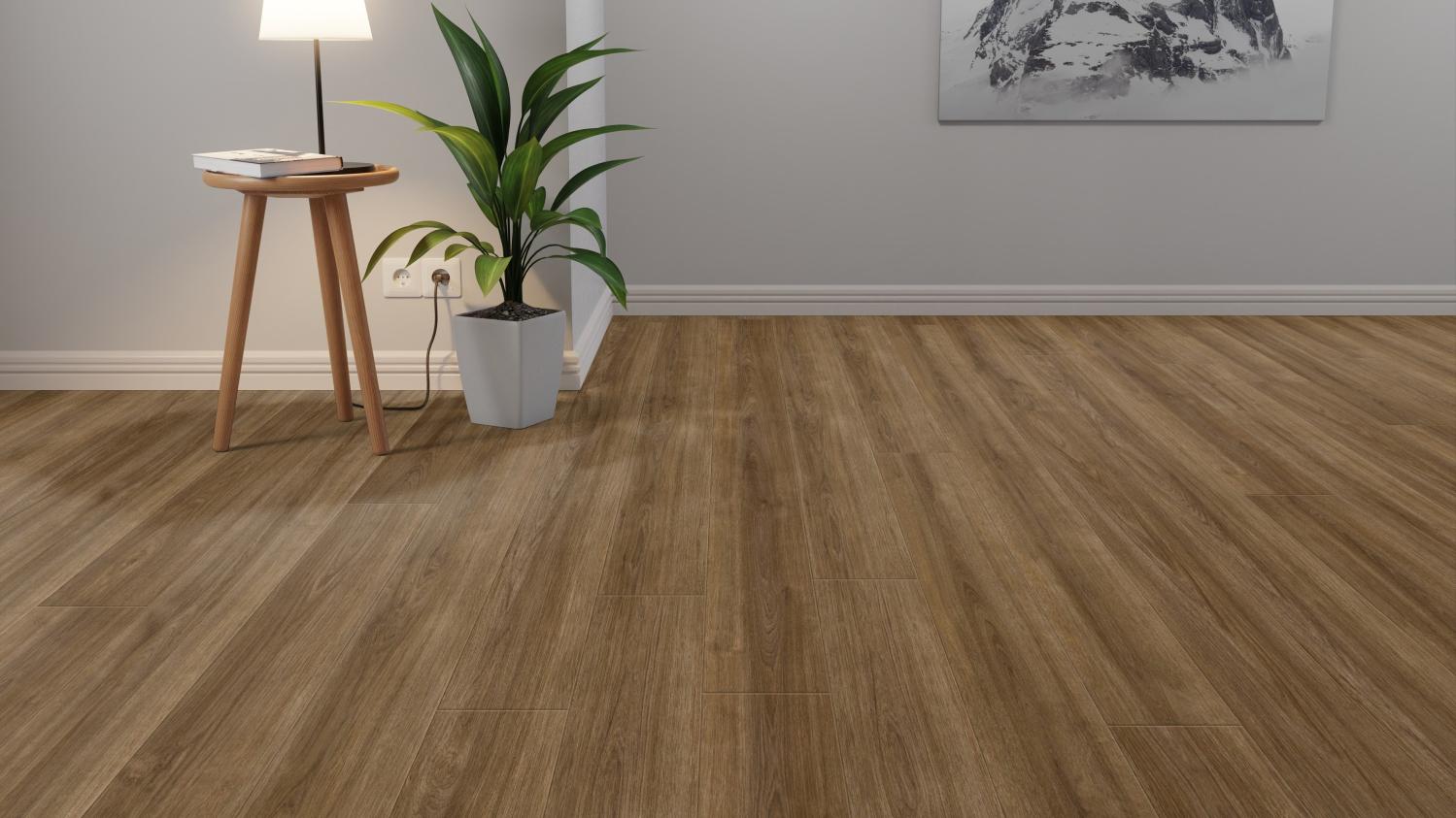 Luksusowa podłoga laminowana o najlepszym stosunku ceny do jakości, która pasuje do wielu różnych stylów wnętrz. Dzięki wbudowanej warstwie tłumiącej odgłosy kroków ta wykładzina podłogowa charakteryzuje się wyjątkowo niskim poziomem hałasu. Dzięki układaniu pływającemu montaż nowej podłogi staje się łatwiejszy.