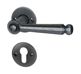 Obrotowy przycisk na zewnętrznej stronie drzwi do mieszkania nadaje im historyczny charakter. Wewnątrz okrągłe rozety i rustykalnie zdobiona klamka tworzą harmonijną całość. Dzięki stabilnej konstrukcji stalowej klamka drzwiowa bez problemu wytrzymuje nawet długotrwałe obciążenia.