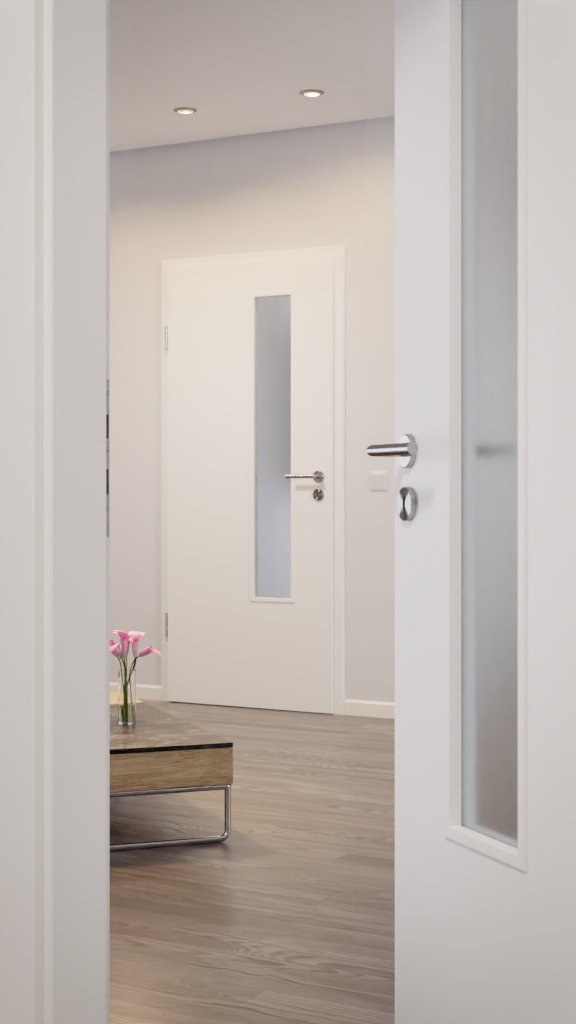 Folia dekoracyjna pokrywa wnętrze skrzydła drzwi. Dzięki temu drzwi nadają się do regularnego użytku w przestrzeni prywatnej. Ponadto skrzydło drzwi ma kwadratową krawędź, która podkreśla subtelny wygląd.