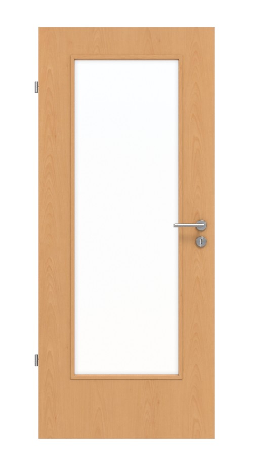 W centrum skrzydła drzwiowego znajduje się duże przeszklenie. Zaleta drzwi wewnętrznych: Szkło jest wliczone w cenę. Dodatkowo powierzchnia w kolorze buku stanowi ponadczasowe wykończenie.