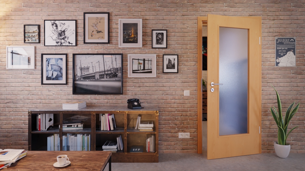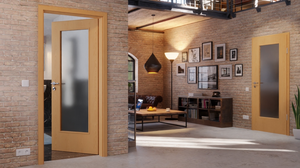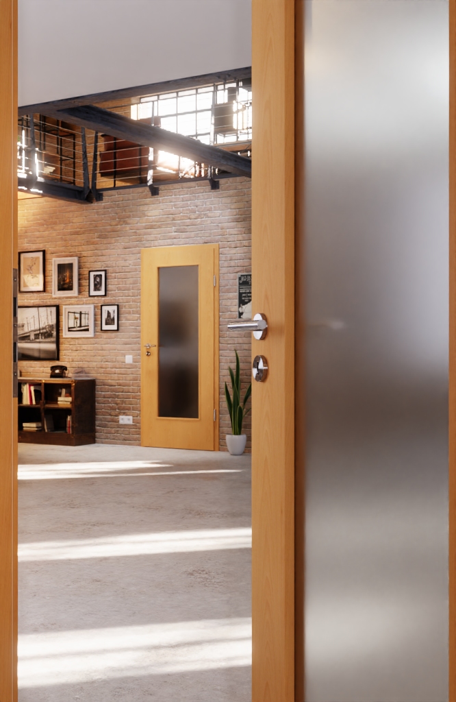 Folia dekoracyjna zamyka skrzydło drzwiowe. Drzwi nadają się szczególnie do codziennego użytkowania w sektorze prywatnym. Prostokątna krawędź drzwi podkreśla minimalistyczny design.